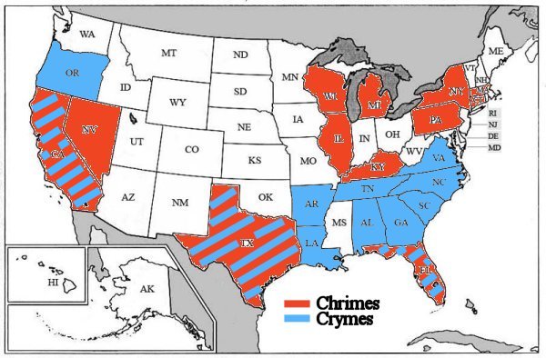 People named CHRIMES in the United States have been found in Illinois, Massachusetts, Pennsylvania, Kentucky, Wisconsin, California, Florida, Texas, Nevada, Connecticut, and New York State