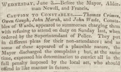 Bearing in mind that the first proper police force was not established in England until 1829 (in London), William, Thomas and Samuel were very early provincial "constables" indeed.